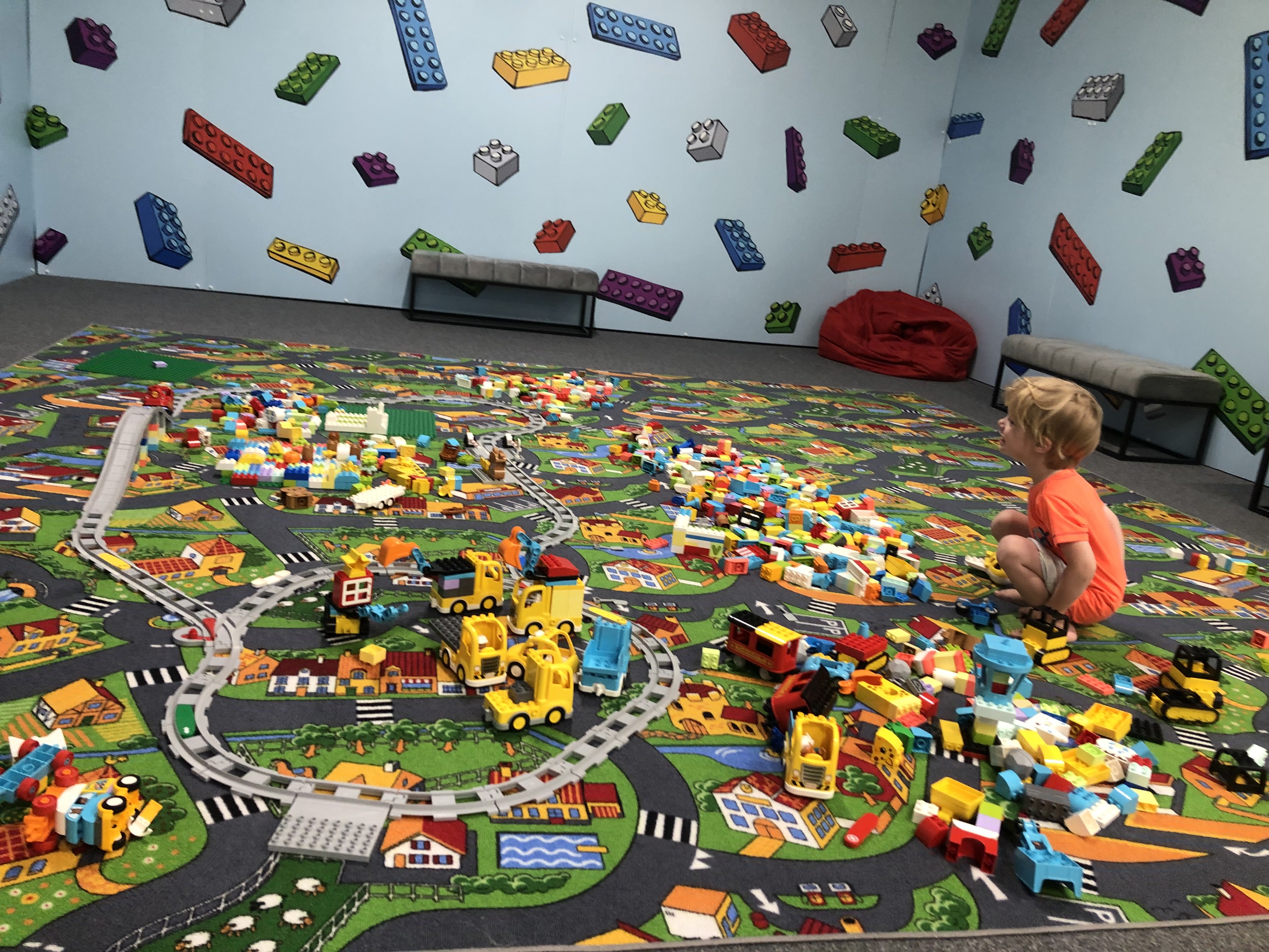 A játszóház nagyjából 4 nagyobb részre bontható. Van egy óriási duplo sarok, ahol egy autós szőnyegen a Duplo vasúti készlettől a markolókon és dömpereken át majdnem minden Duplo készletből fellelhető valami. A Duplo sarokkal szemben van egy Ninja Go-nak kialakított rész, ahol ezeket a pörgettyűket lehet használni. Az egész játszóházban - a középső sávban főleg - sok asztal van elhelyezve különböző tematikájú és színű legokkal, az asztal közepén lego alaptáblákkal, amire építeni lehet. A negyedik rész pedig az óriási Lego szerű blokkok halmaza, amikből nagyon látványos falakat, házat lehet építeni.
